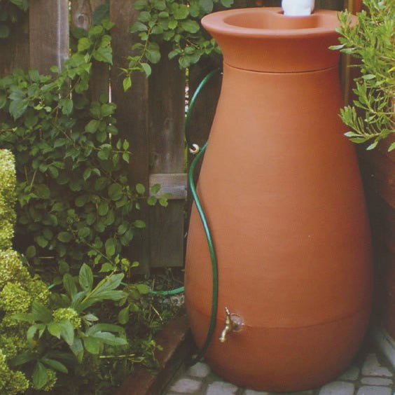 This elegant Cascata Water Butt has been designed to look like a real clay pot whilst being made from tough, high-quality plastic. Standing 47 inches high it can hold up to 245 litres of water and includes both a brass tap and a hose pipe to enable you to easily access the stored water. Making this butt even more decorative it features an integrated planter at the top (or it can be used as a bird bath).