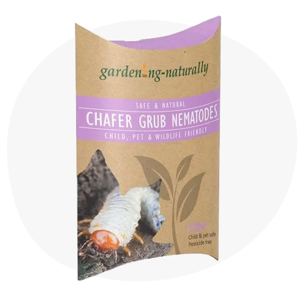 Nematodes are microscopic, beneficial worms that effectively control chafer grub populations. They enter the grubs through natural openings and release bacteria that kill the grubs within days, breaking the chafer beetle’s life cycle and preventing re-infestation.