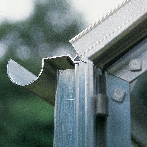 Gutters- Aluminium gutters are built in as standard down either side of the greenhouse. This adds additional strength to the structure and allows a Rainwater Collection Kit (available separately) to be fitted to collect and recycle rainwater.