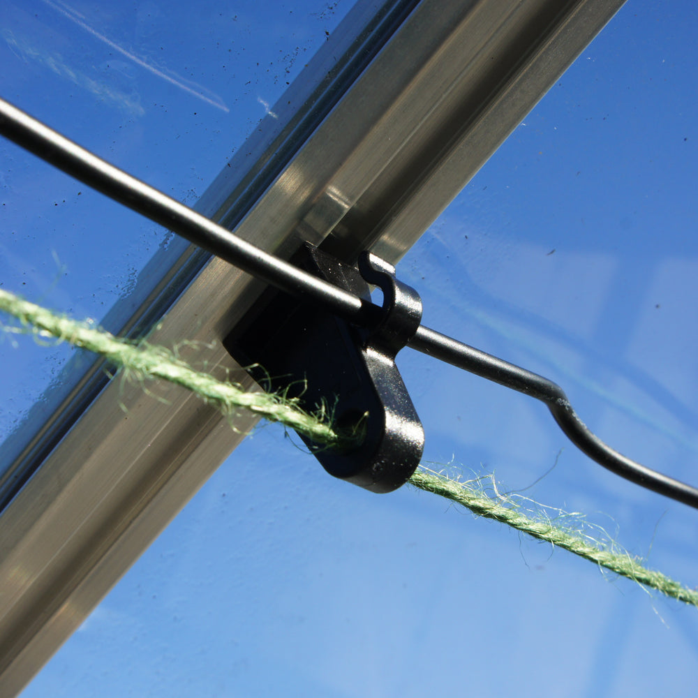 Pack 6 Grow Hooks - easily secured to the roof of the greenhouse they can be used to hold electric cables out of the way or attach string to them to support plants as they grow, e.g. tomatoes.