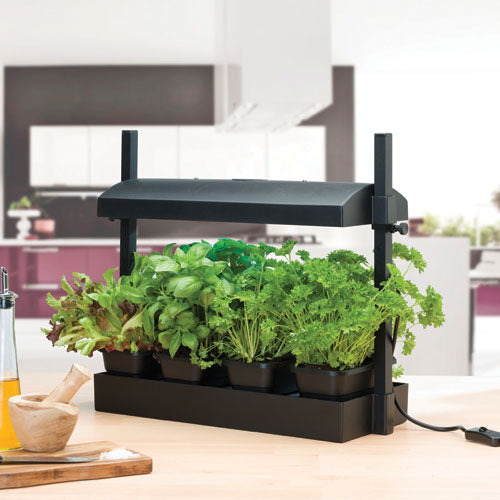 Ideal for growing salads and herbs or for early season starting of seeds. You can also use the Micro Grow light Garden to boost flowering plants out of season. The canopy height can be easily adjusted up to a maximum of 38cm from the base to give optimum plant growth.