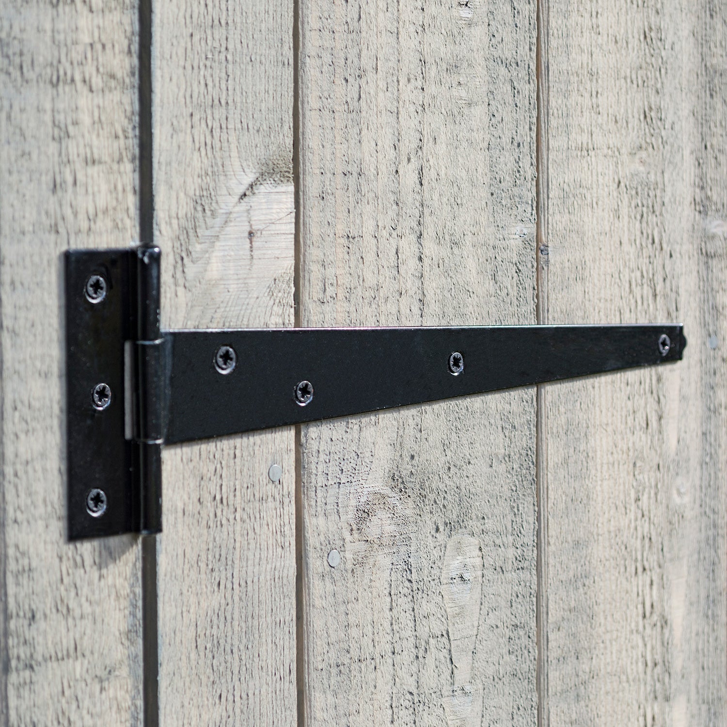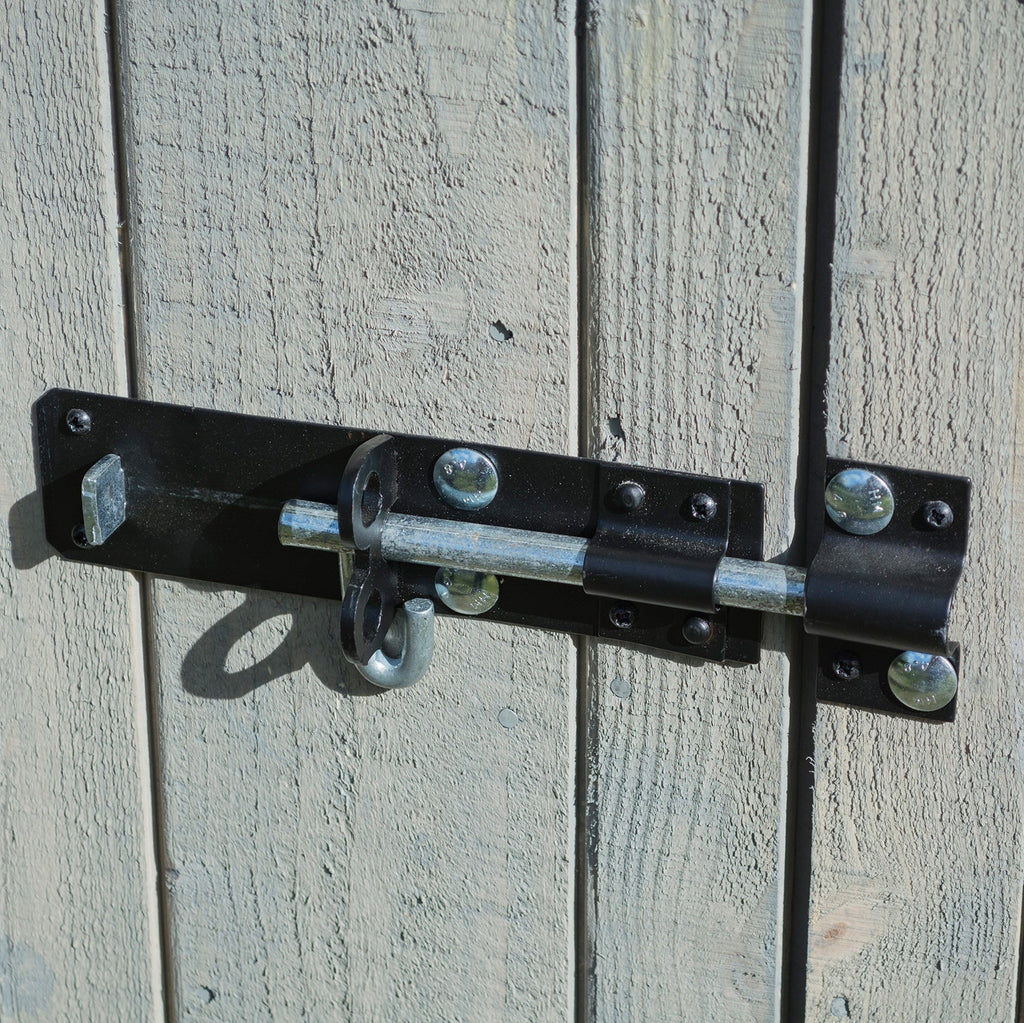 Single-Hinged Door – with Z framing for strength and stability. Three large, T-hinges secure the door to the frame of the shed. A pad bolt on the front secures the doors closed - we recommend adding a padlock (not included) for added security. Door opening size: 5ft / 152.5cm high x 2ft 3½in / 69.5cm wide.