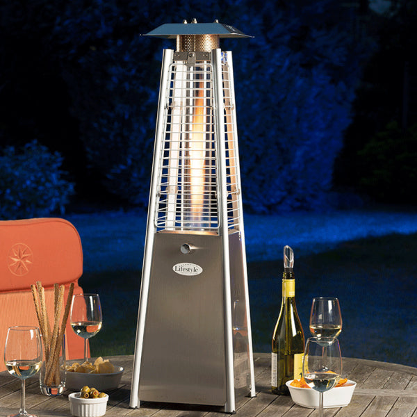 This Chantico Tabletop Patio Heater from Lifestyle is the smaller version of the popular Tahiti Flame patio heater. This stainless steel heater changes the concept of traditional alfresco dining by providing a much more intimate and romantic area.