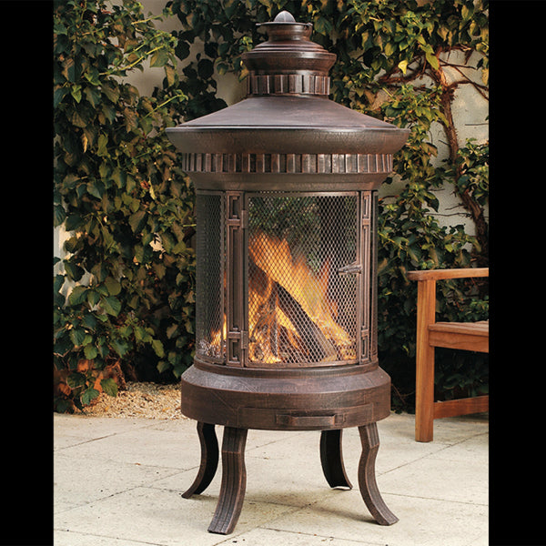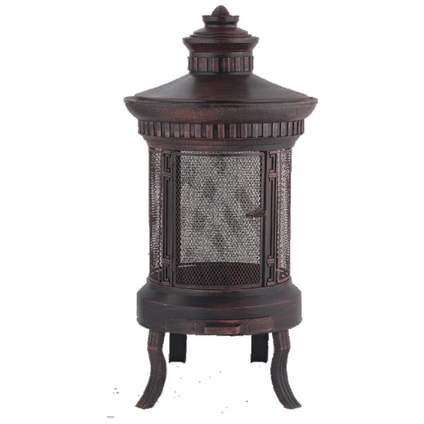 This wood-burning statement piece is made from pressed steel with a brushed copper finish to provide the perfect rustic touch to any garden or outdoor space. It also features a 360 protective screen, ash catcher and a large hinged door.