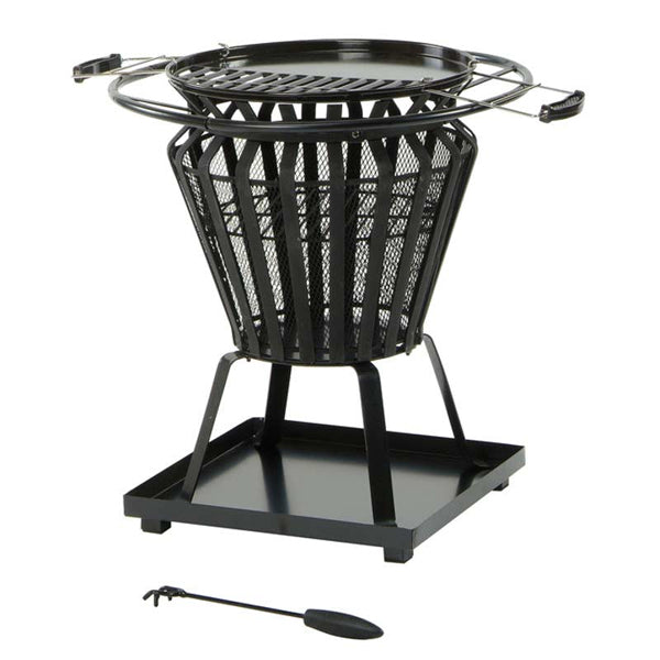 The Signa Fire Pit is a multi-purpose basket made from strong, black steel. The removable grill plate with handles enables this wood burner to be used for both cooking and heating. It features an ash catcher pan that can double as a base. And comes complete with fire poker.