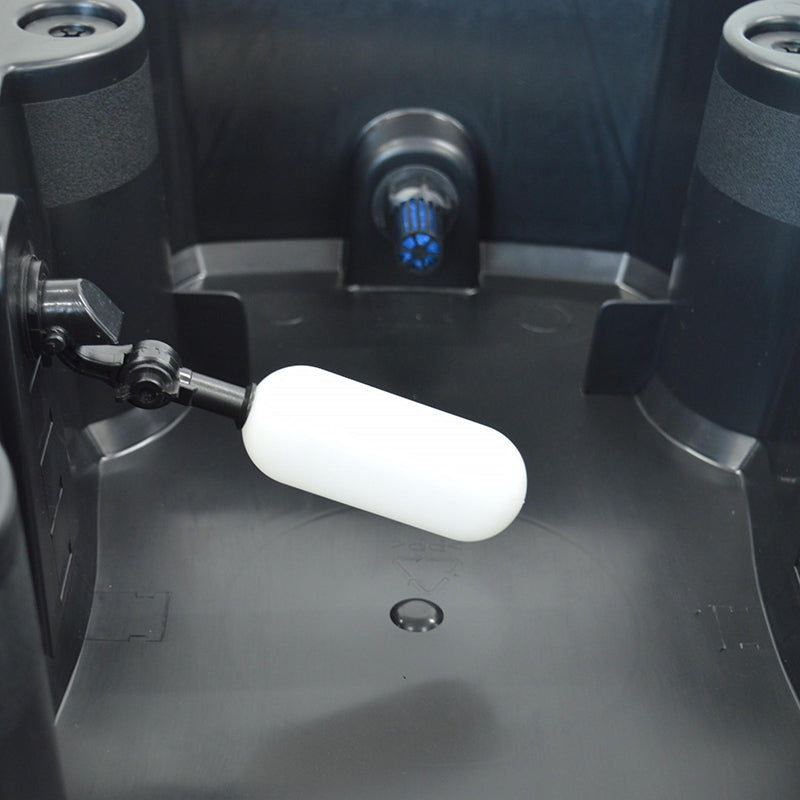 - Push the float valve through this hole, with the main body of the valve inside your water tray or reservoir.