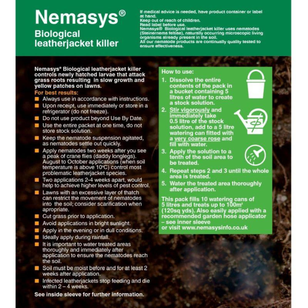 Leatherjacket nematodes are an effective and natural solution. These microscopic worms enter the larvae, release bacteria, and eliminate them. Simply mix the nematodes with water, apply to your lawn, and keep the soil moist to allow the nematodes to move and work efficiently.