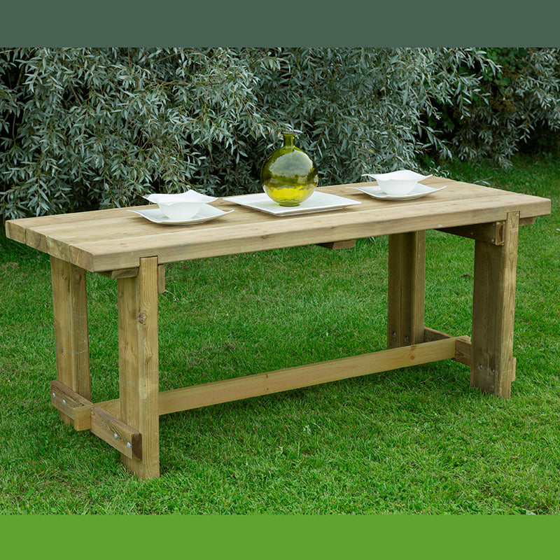 These Rectory Tables form part of Forest Gardens' new range of modular timber furniture. Made from softwood which has been smooth planed and pressure treated you will have a highly durable table which will last for years. You will be able to comfortably accommodate 6 people seated at it.
