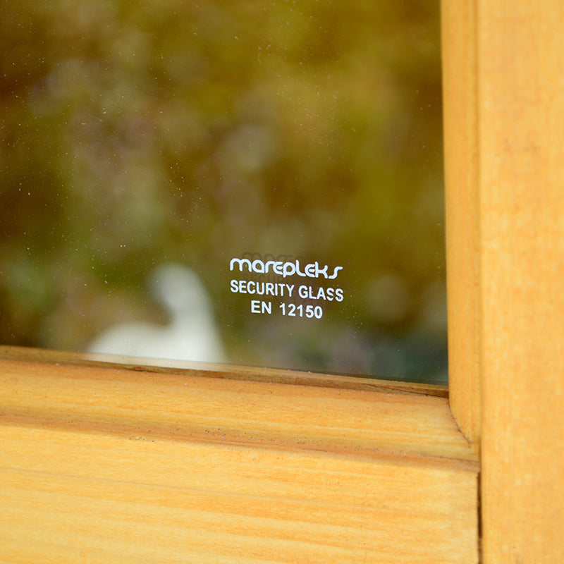 The Rowlinson 7ft x 7ft Eaton Summerhouse has endless uses from an office space, indoor dining, relaxing and a great social place to entertain friends and family. A roof overhang provides a place to take shelter and shade from the weather. Featuring tongue and groove floor and roof, toughened glass windows, lockable double doors, mineral roof felting and a dipped honey-brown finish, this summerhouse will make a great feature in your garden and is designed to keep for a long period of time.