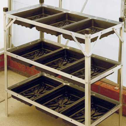 This seed tray shelving system provides gardeners with a space-saving way to grow seedlings in a greenhouse. The lightweight aluminium frame is durable and easy to move, while the included trays ensure a practical growing setup. With four different sizes available, there is an option to suit every greenhouse layout.