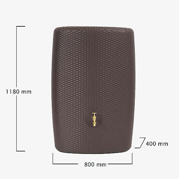 Size - approximately 47" (118cm) high, 32" (80cm) wide, 16" (40cm) deep. Weight approx. 15kg. Capacity 300 litres (66 gallons).