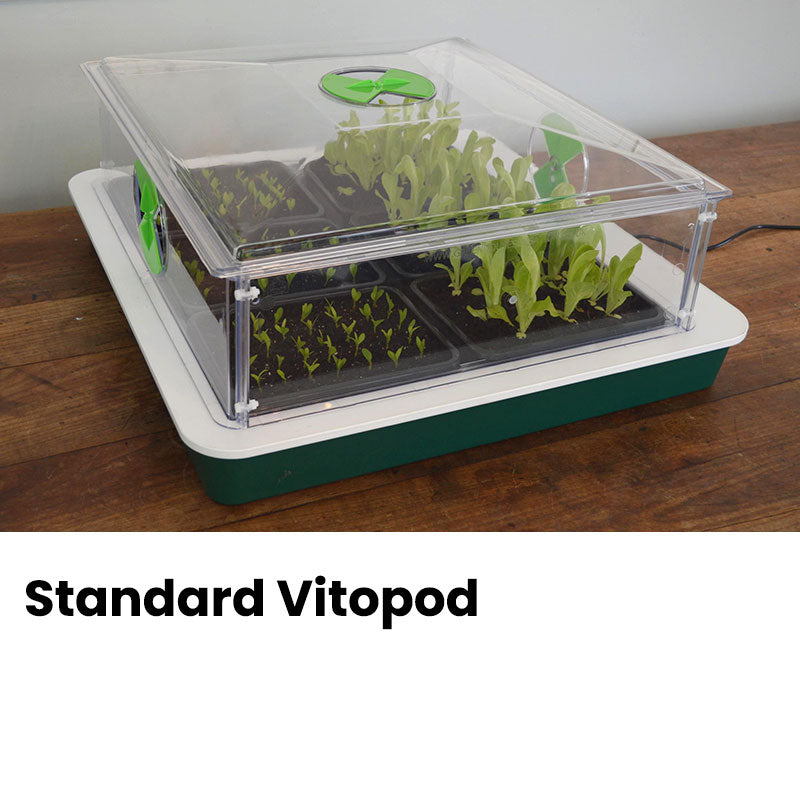 Providing the perfect environment for the propagation of seeds, cuttings and the overwintering of delicate plants this versatile heated Vitopod Propagator is available in two sizes, Standard and Large - both units come complete with a single layer cover and an electronic thermostat, which allows you to create a controlled propagating environment .